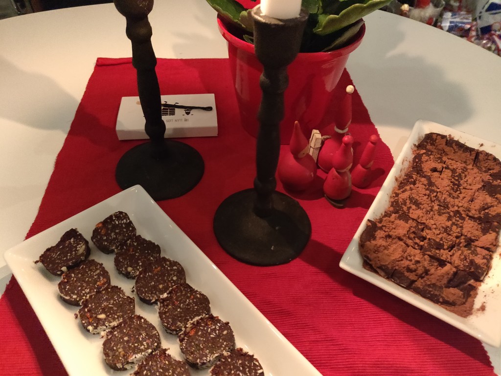Men en god avslutning hör också till. I år bidrog inte dotter Olivia med godsakerna utan jag hade fått till en riktig god nöt- och kakaorulle på dadlar, gojibär, kokos och massa blandade nötter samt en chokladtryffel på riktigt mörk choklad, kokosgrädde och kokosolja. Smaskigt.