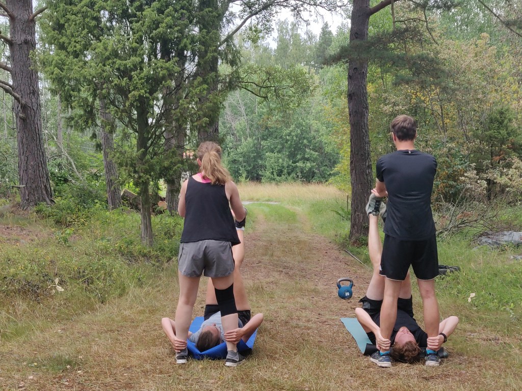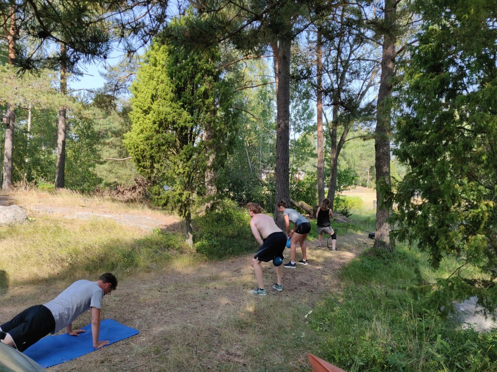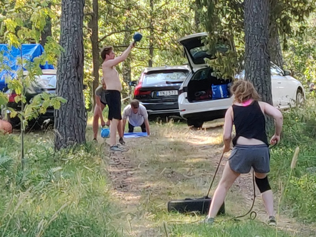 Cross fit, löpning, cirkelpass och yoga stod på veckans program, kryddat med vedklyvning, sågning, stapling och annat smått och gott. Och så givetvis, kubb, badminton och några promenader. Bad, lite mer bad och ytterligare bad. Vilken vecka!