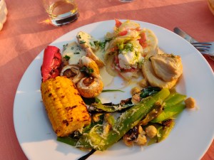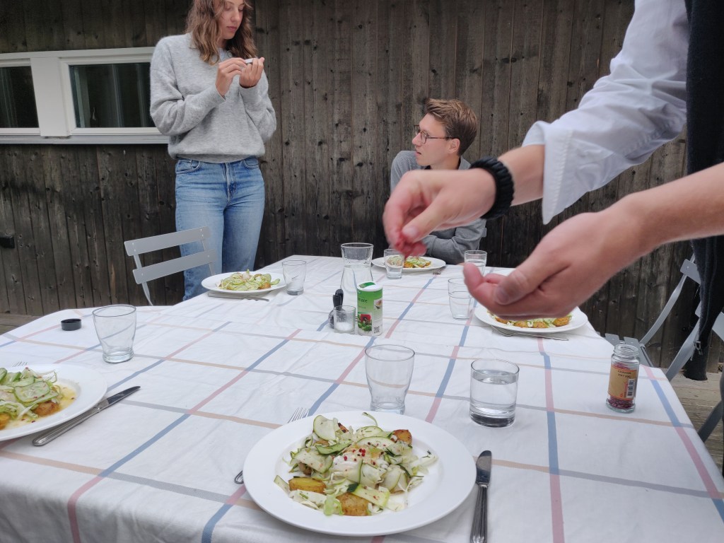 Båda mina vuxna barn och deras respektive är matälskare och mycket intresserade och nyfikna matlagare. Så denna vecka har det blivit mycket mat, det vill säga mycket god mat. Vi har njutit av svenska tapas, torskrygg med picklade grönsaker, pizza med både vita bönor i degen och traditionell, indisk kikärts- och tofugryta, zucchinigratäng mm. Och icke att förglömma, de goda desserterna.