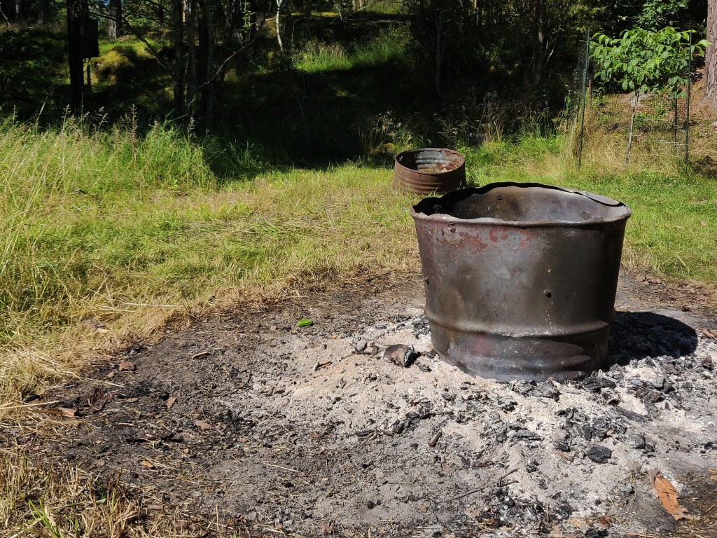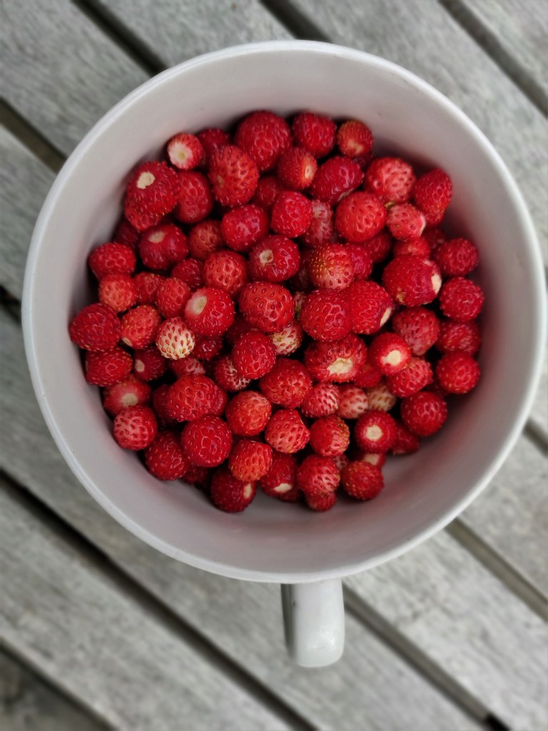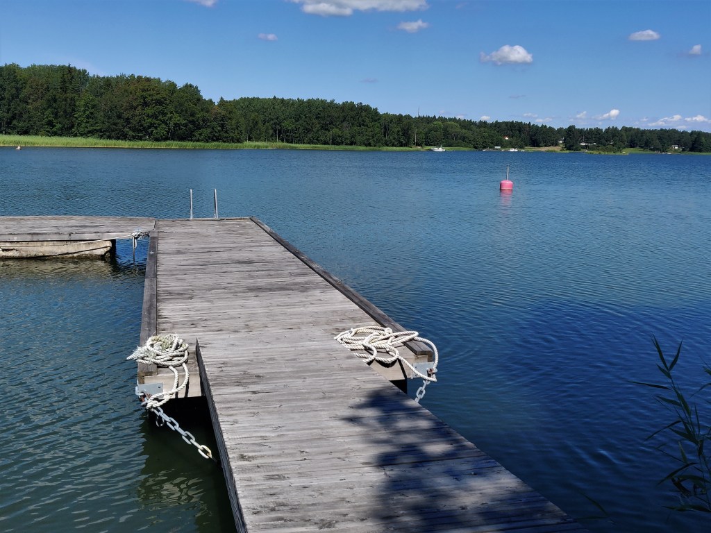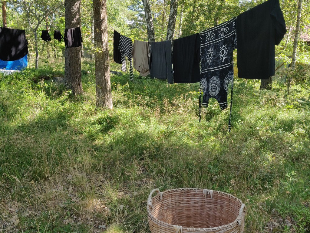 Björnbärsbusken blommar,körsbären börjar mogna,krusbären likaså.Tvätten hänger på lina,nästan all ved är sågadoch staplad snyggare än någonsin.Elden har brunnit ut och ris och plank brunnit upp,det växer i lådan med koppartejp,men timjan och popcornmajs vill inte gro.Några kantareller till kvällens lubboch smultron med glass från Tre vänner (den bästa)och så ett och annat bad förstås.