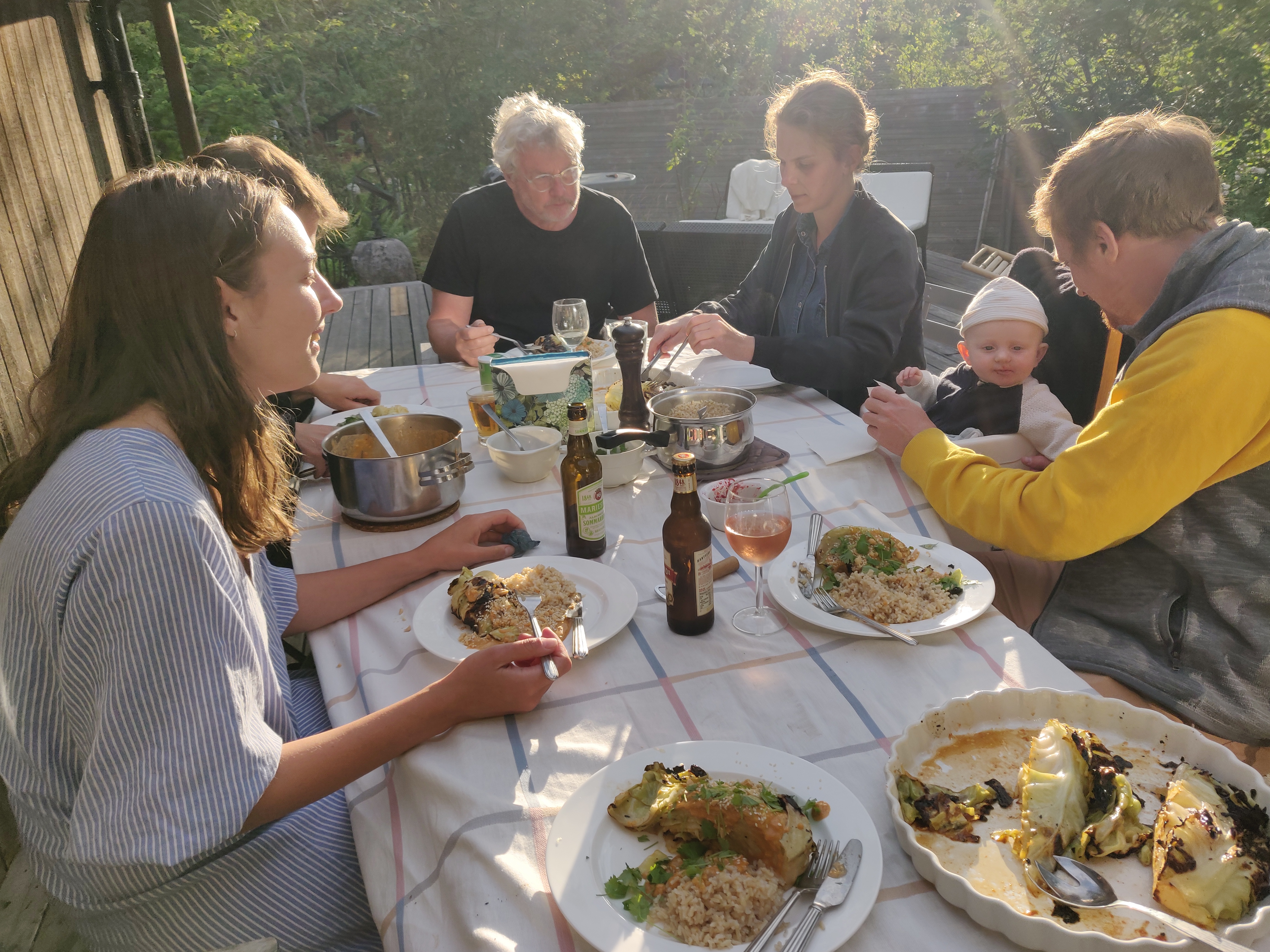 Den minsta och yngsta familjemedlemmen hamnar ”oförklarligt” i centrum. Många goda middagar tillagades och serverades och minstingen fick utveckla sina smaklökar med nya smaker, dock inte ännu från vårt middagsbord.