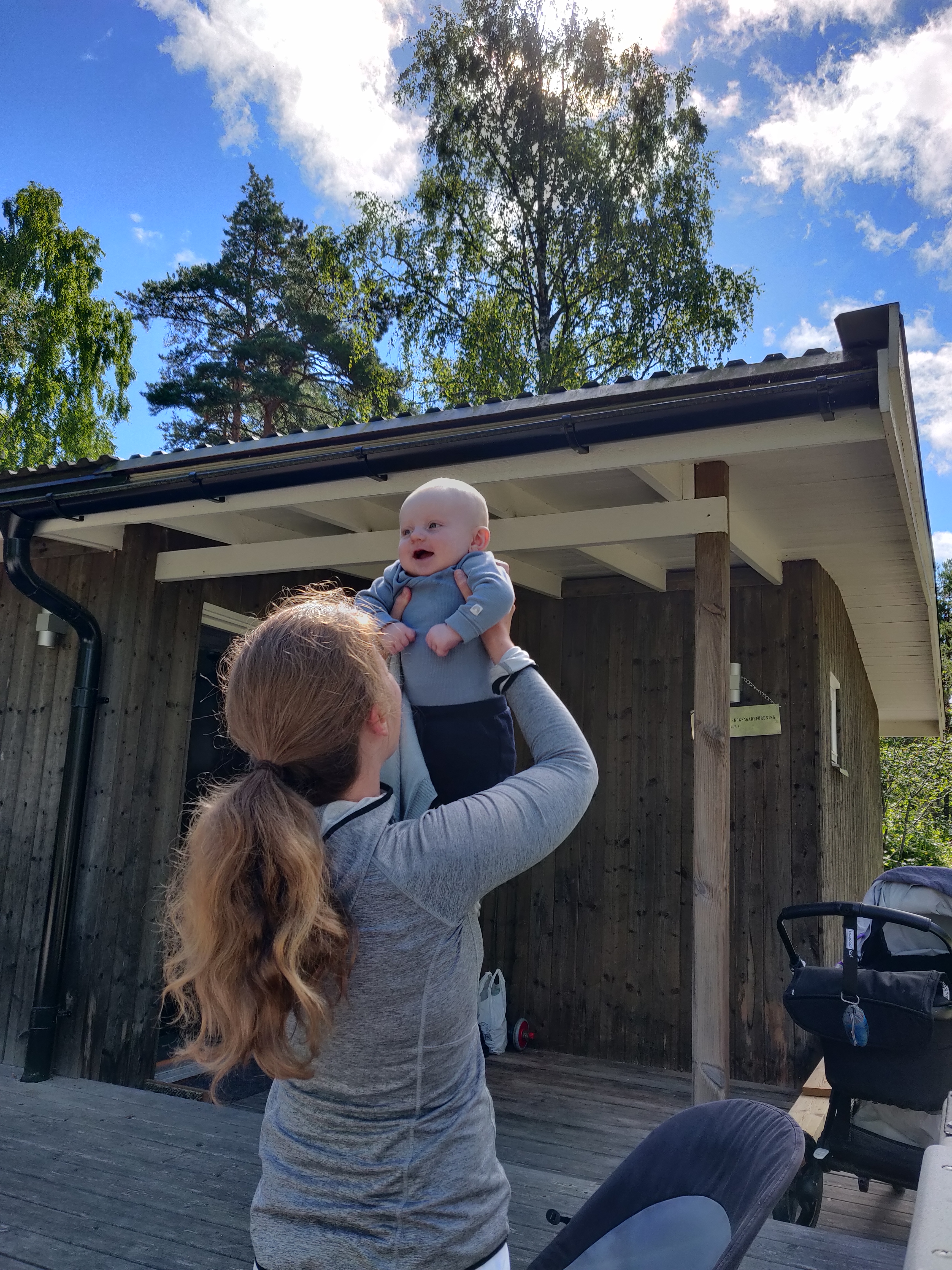 Mycket sol och många smarriga sötsaker, men också reparation av terrass och söta ”pruttljud”.